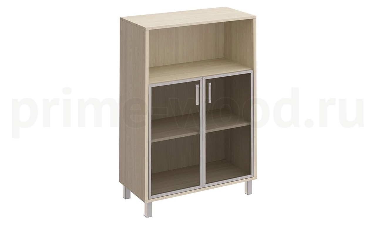 Шкаф для документов, двери стеклянные в алюминиевой раме + ниша БОРН 90x45x131