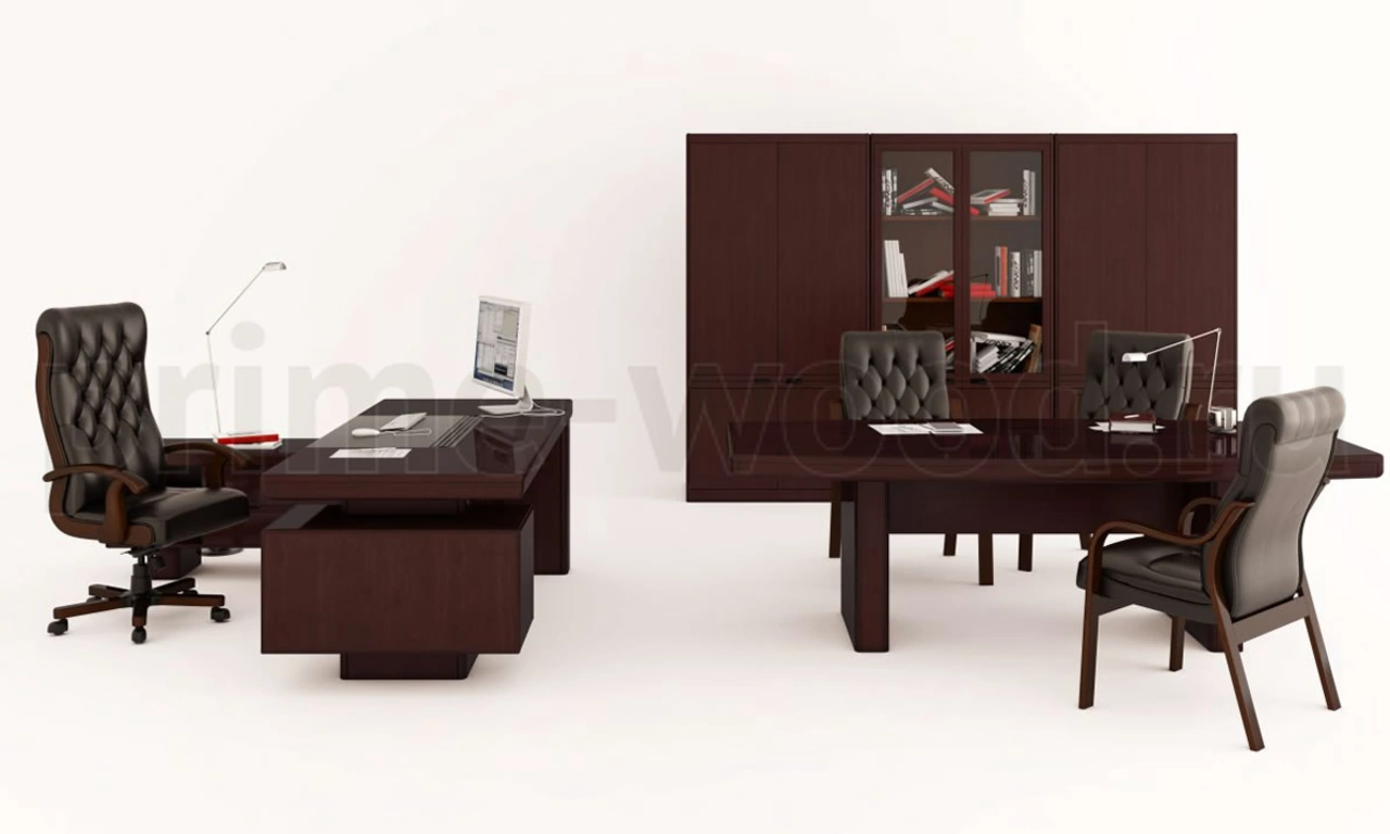 Столешницы письменных столов имеют вставку из Экокожи. Толщина кожи - 2 мм.